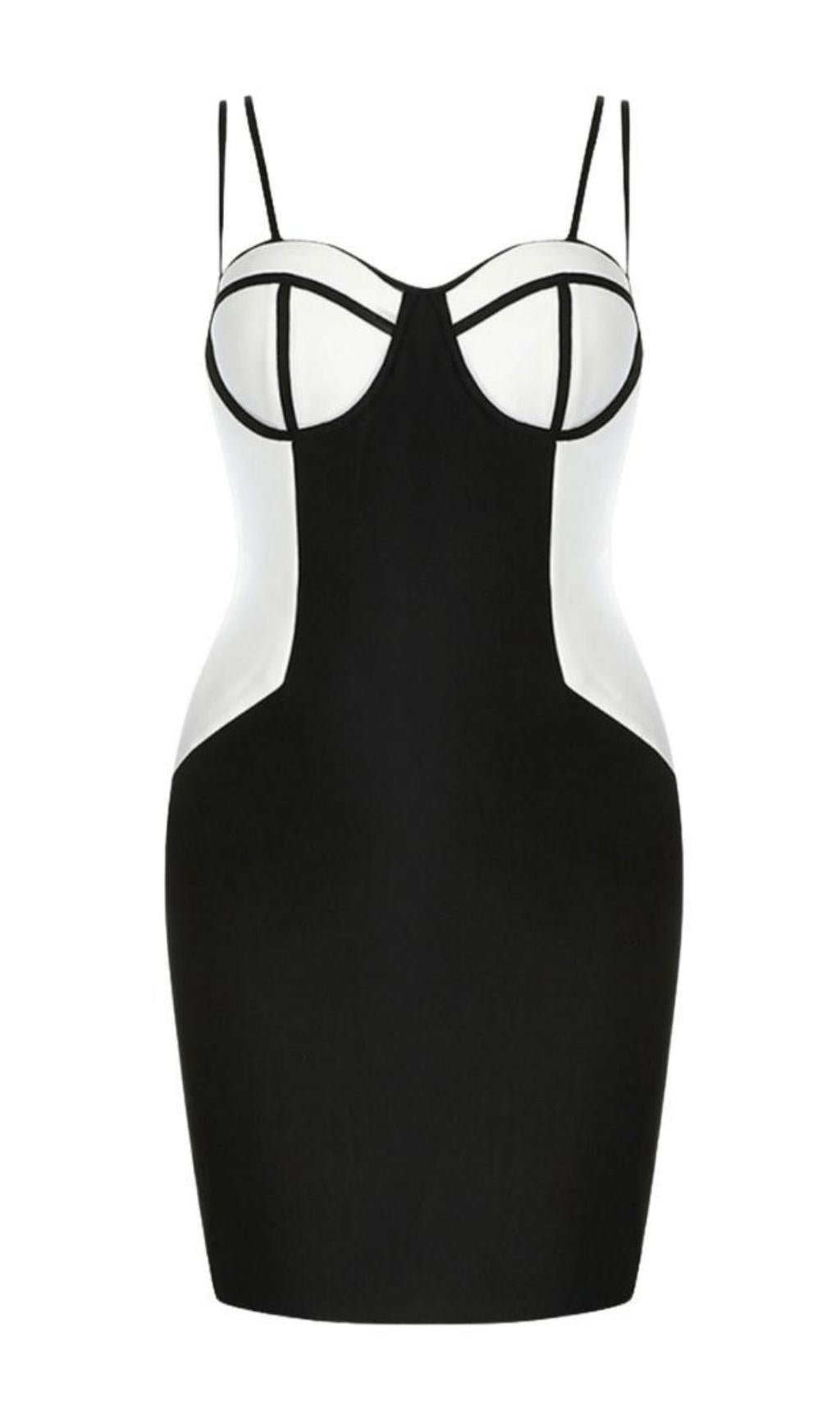 The SLING LOW NECKLINE SLEEVE LAYERED DRESS is a stunning piece that combines style and comfort. With its low neckline sling and unique chest support design. this dress is sure to turn heads wherever you go. The black and white color combination adds an eye-catching touch. making you stand out from the crowd.