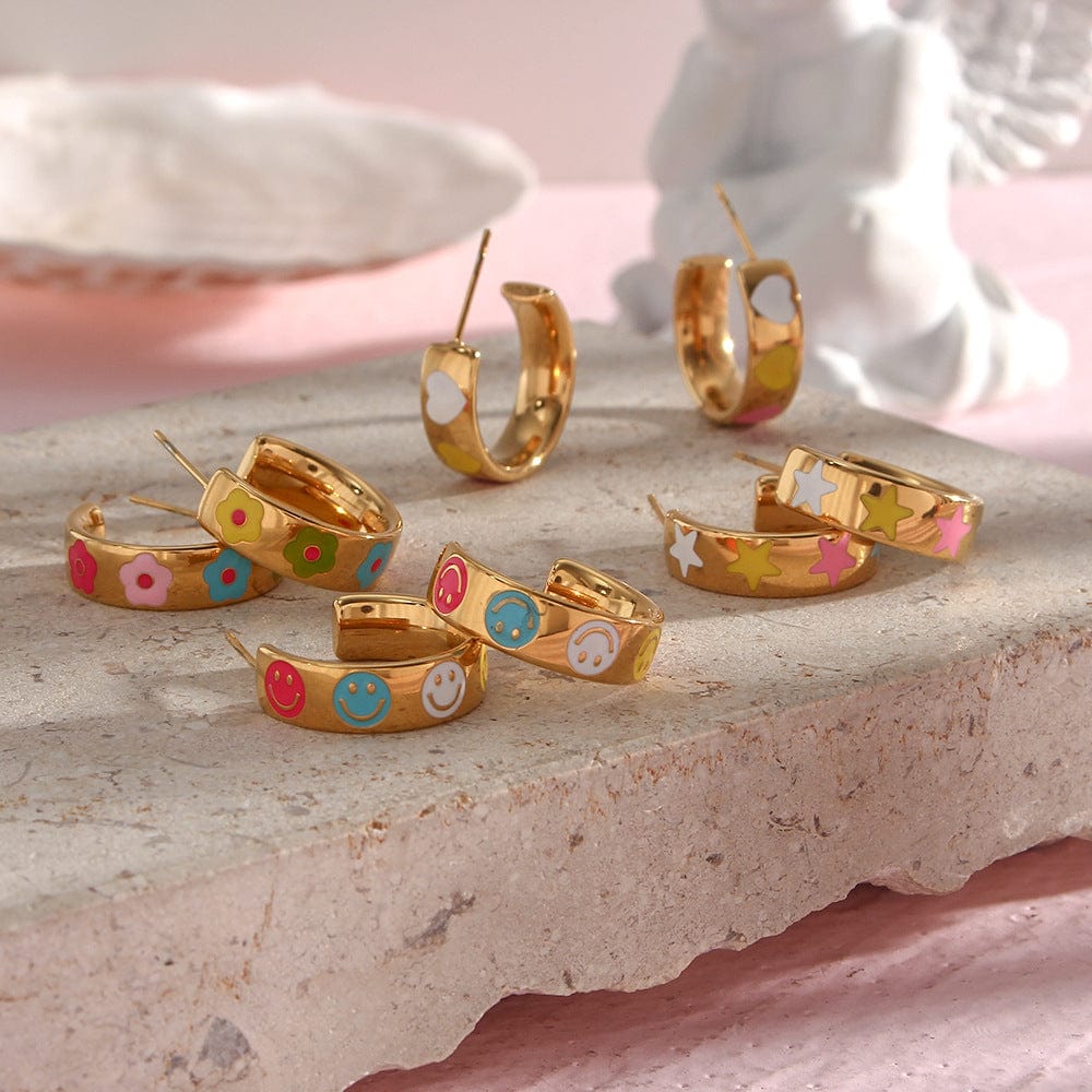 Bring sunshine everywhere you go with Smile & Shine Earrings! These hoop earrings are crafted with 316L stainless steel and PVD plating - so they'll stay as bright as your smile. Plus. they're bad-weather-proof �they won't tarnish and they won't cause allergies! Shine on. you glowing queen!