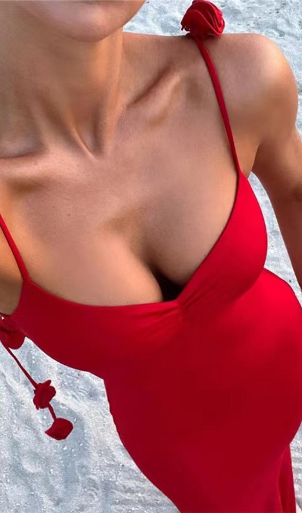 Featuring delicate spaghetti straps and a fun floral pattern. this dress is perfect for any occasion. And with its comfortable midi length. you'll be stylish and comfortable all day long.
