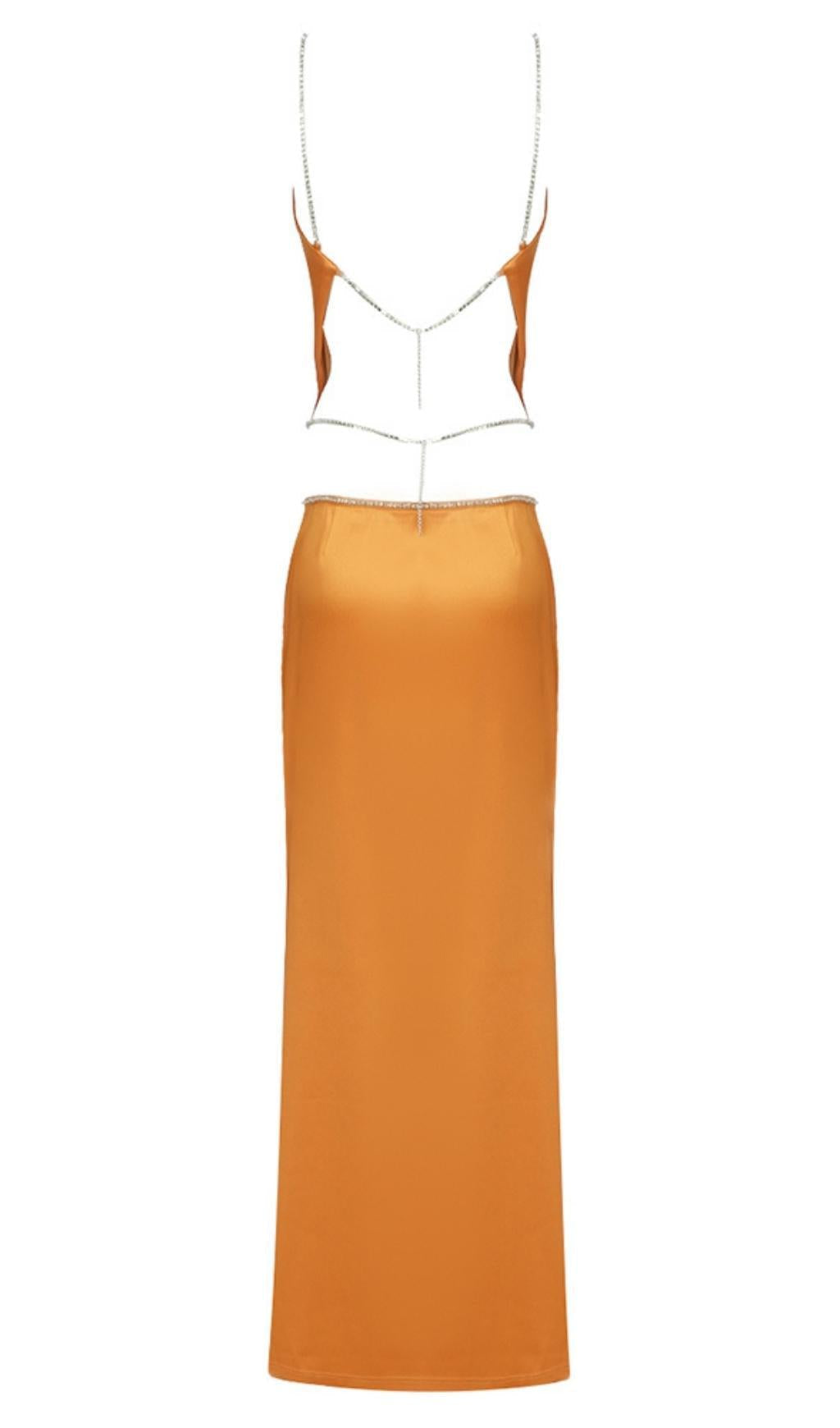 Elevate your style and make a lasting impression with our Strap Backless Two Piece Set in Orange. Order now and be the center of attention at your next special occasion!