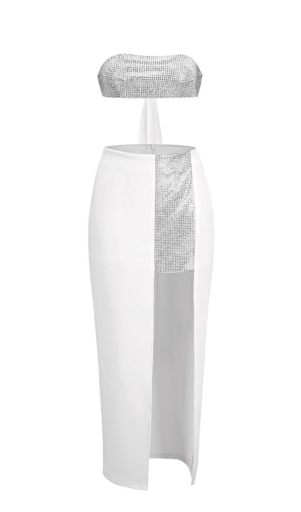 Get ready to turn heads with our stunning Strapless Crystal Two Piece Set. This dress is designed to make you feel sexier and more attractive. showcasing your beautiful figure with its strapless design. The crystal detailing adds a touch of elegance and sparkle. making you the most dazzling woman in any crowd.