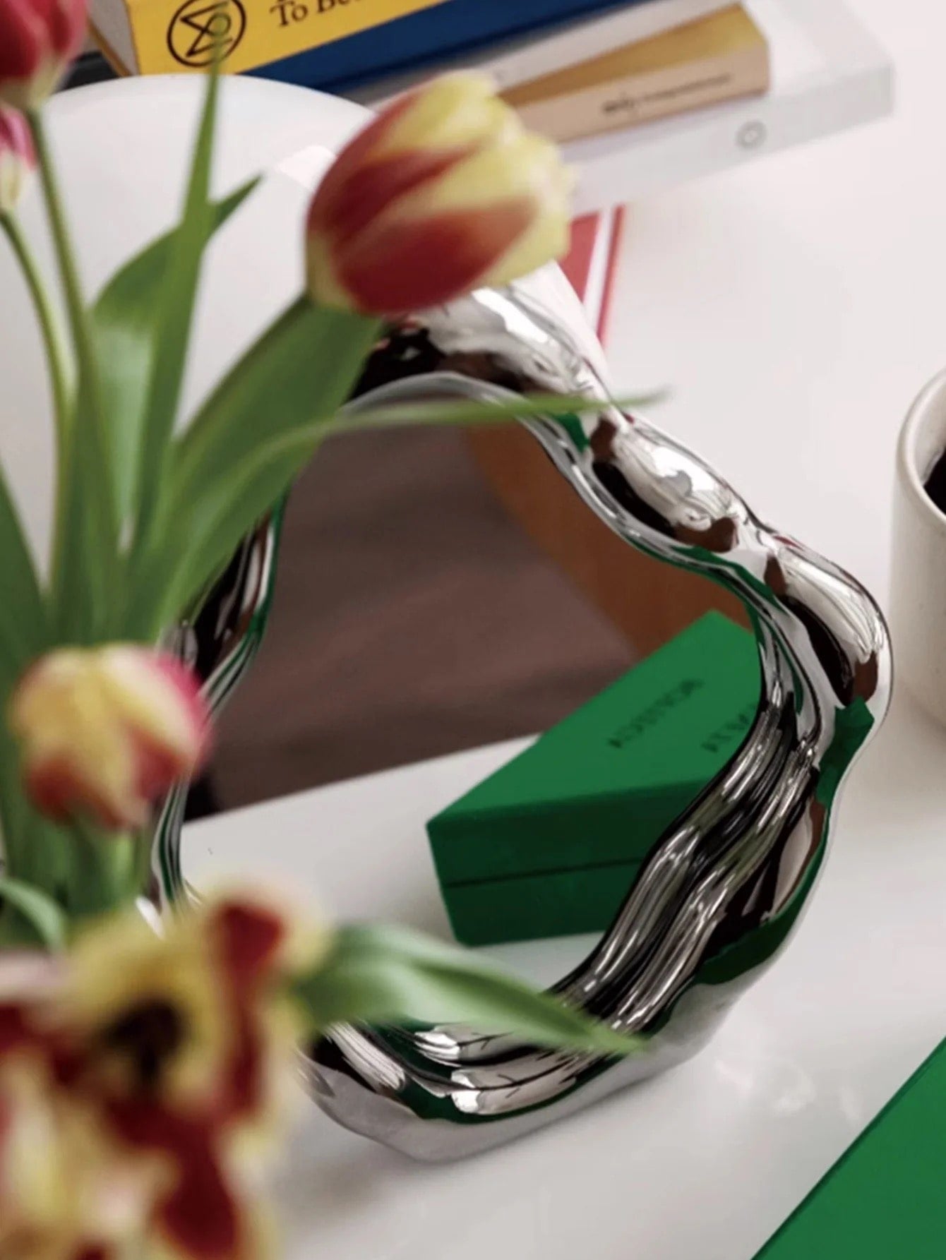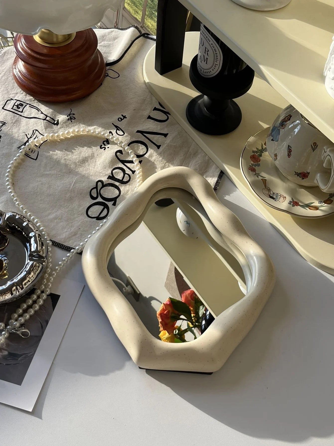 The high-color French-inspired frame adds a sophisticated touch. while the electroplated silver finish ensures durability and shine. Whether used as a toilet wall mirror or a standing desk accessory. this decorative piece doubles as a stylish ornament for any room. Perfect for aesthetic desk decor. Korean-style home setups. or as a luxury gift. this mirror effortlessly enhances the ambiance of your home decor. Make a bold statement with this irregular metallic mirror. ideal for creating a modern yet vintage vibe.