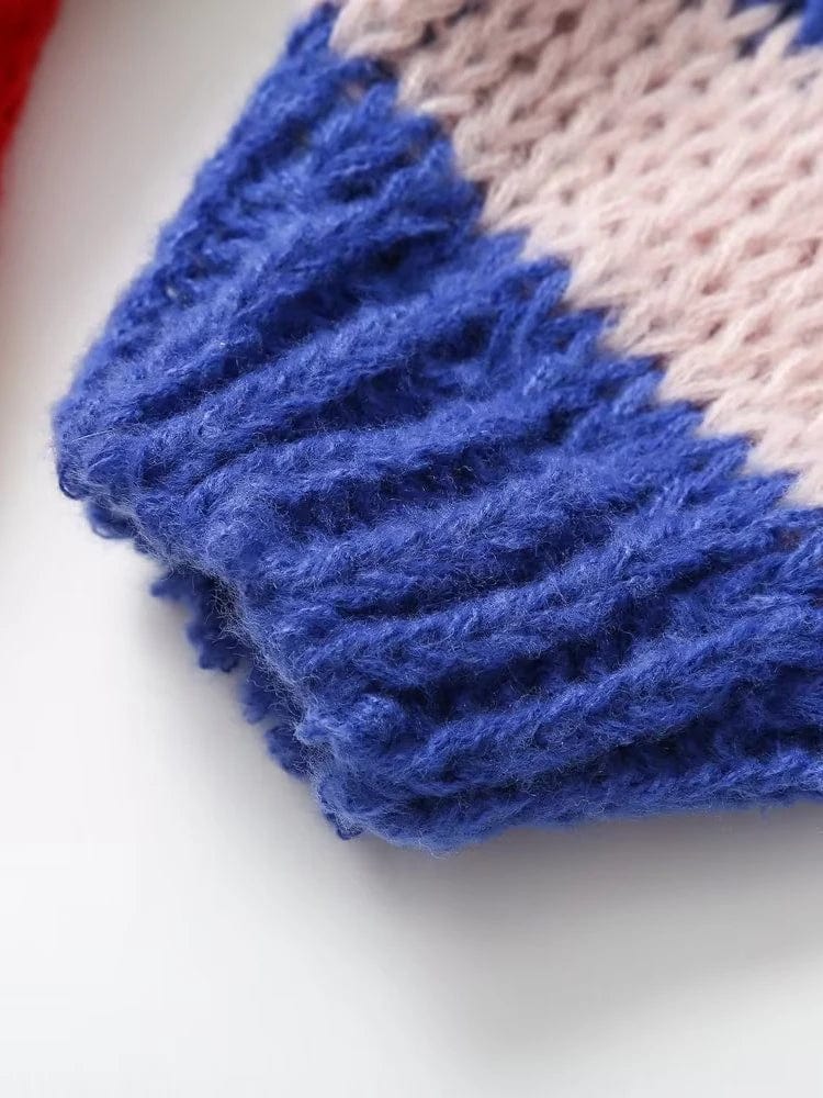 Get ready to cozy up in style with our Thyme Colorblock Sweater! Made with chunky yarn. this sweater features a playful colorblock design that will make you stand out from the crowd. The ribbed sleeves and hem add an extra touch of comfort and style. Stay warm and trendy with this must-have winter piece!