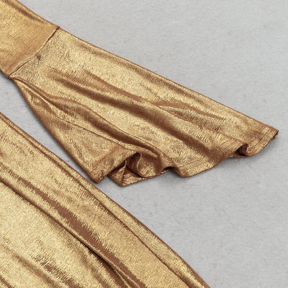 This dress is a show-stopper! It features a scale-like trumpet sleeve and gold maxi design. with a low cut and cutout detail that will have you turning heads everywhere you go. Show off your curves and make your mark in unique style!