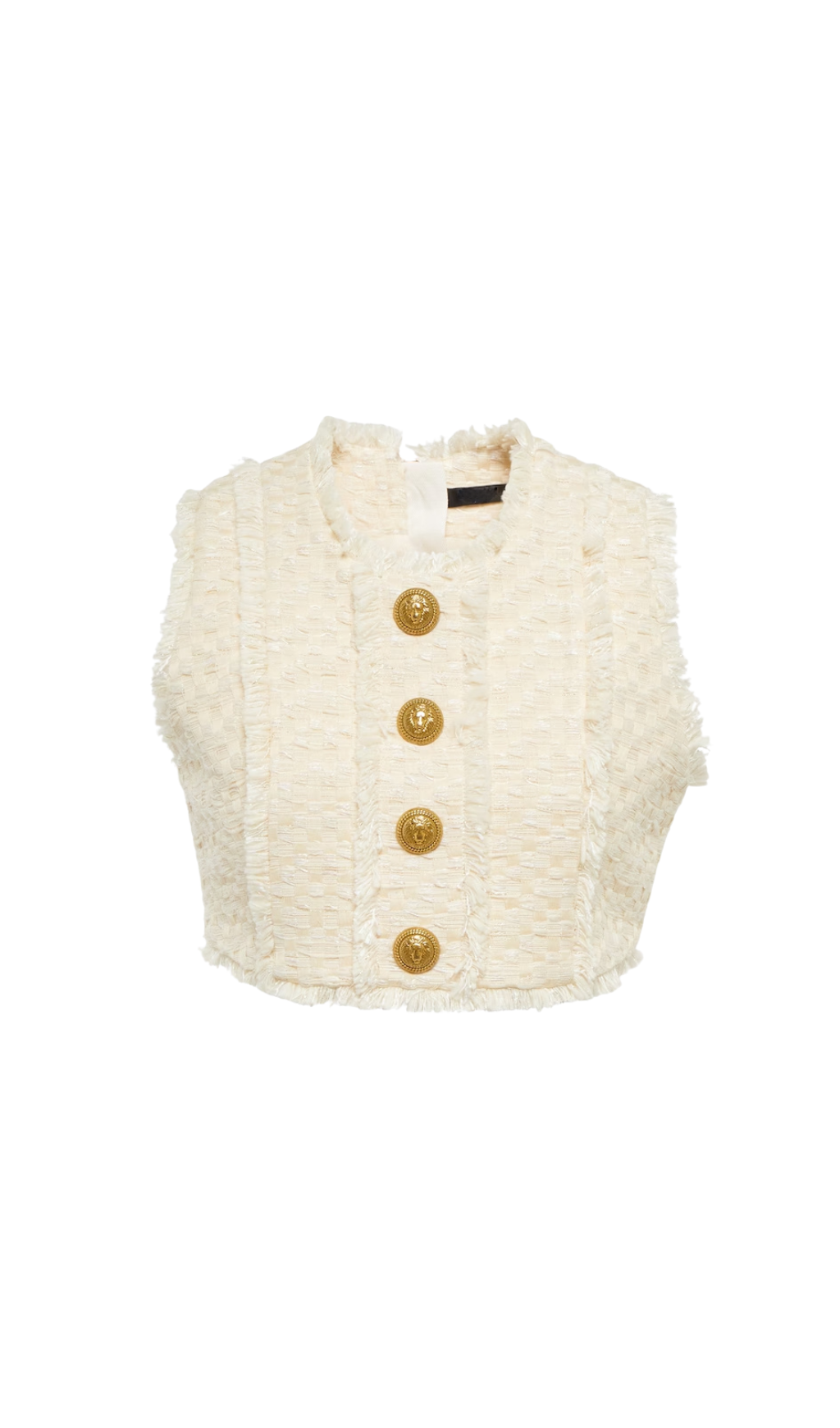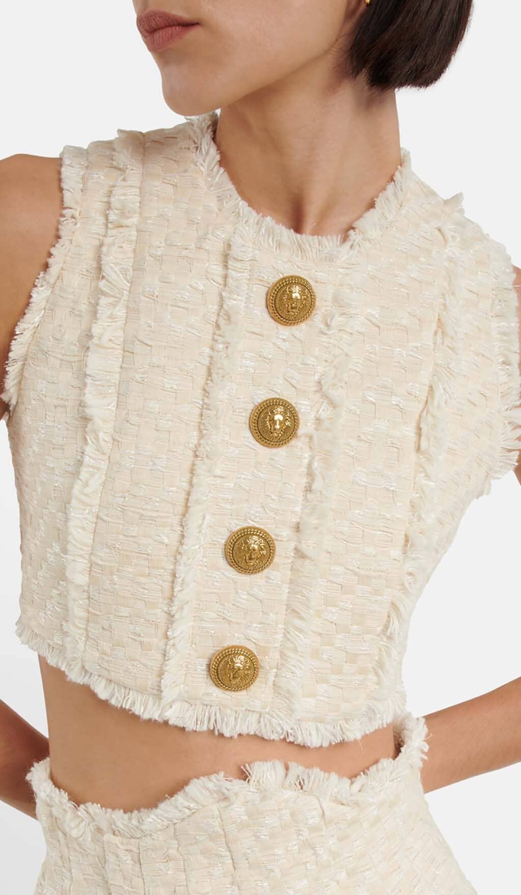 TWEED CROPPED SETS WITH PLATED IN LVORY