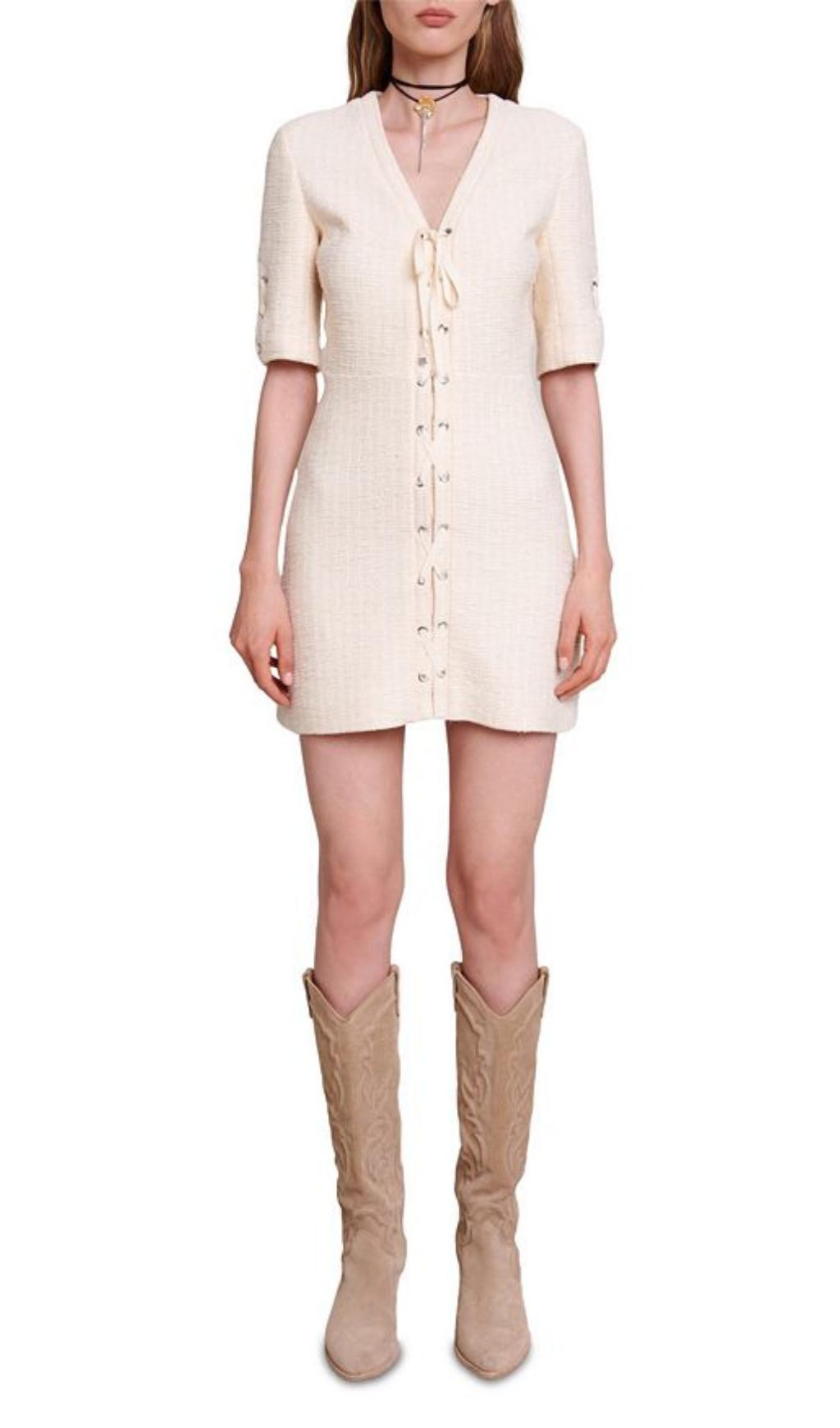 Made from high-quality tweed fabric. this dress will keep you looking chic and stylish. Perfect for any occasion. you'll love how comfortable and versatile this dress is. Upgrade your wardrobe with our TWEED DRESS today!