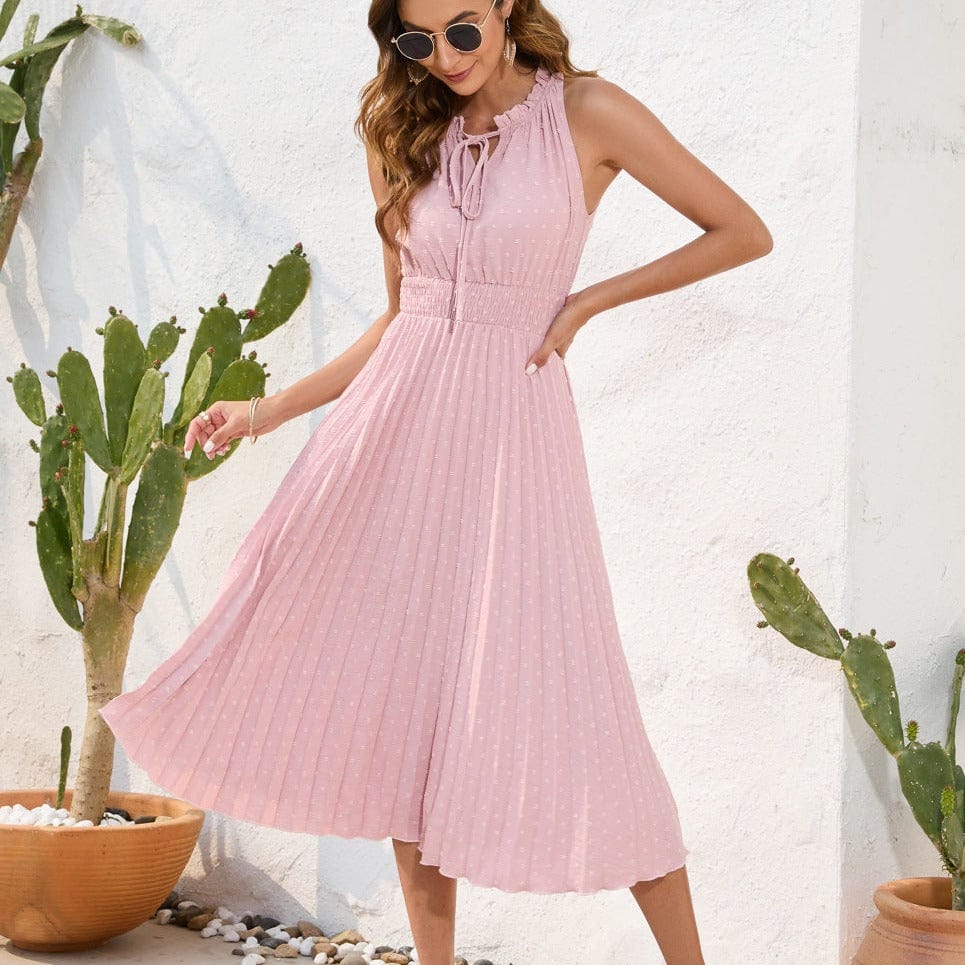 Look fabulous this season in the Ulyssa Boho Maxi Dress! Flaunt your stunning style made with lightweight polyester fabric. an elasticized waistline. and a pleated round neckline with hanging ties - all that's missing is your perfect summer tan! Your Bohemian vibe is sure to be full-on maxed out! 🌞