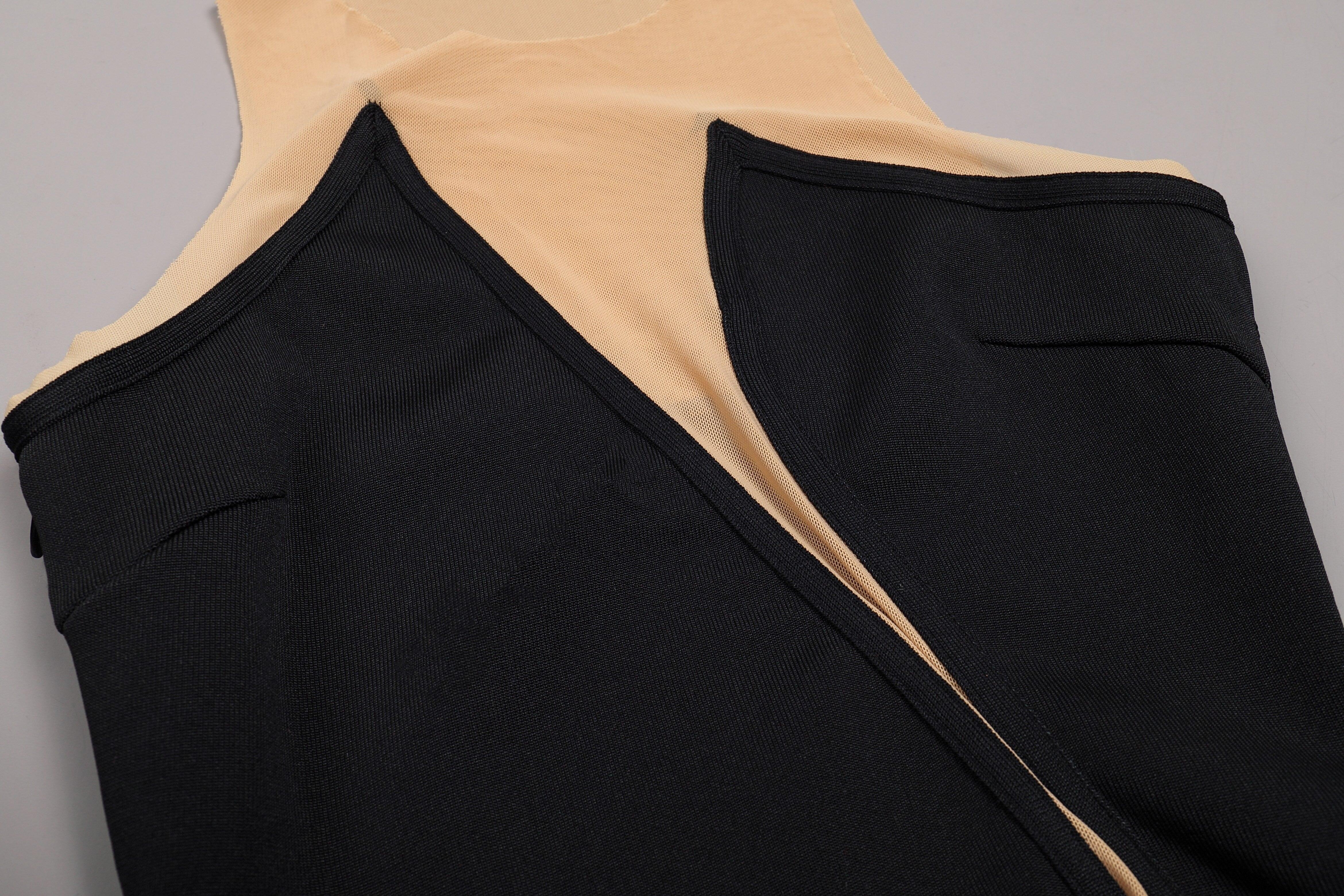 Experience the perfect blend of playfulness and elegance with our V Neck Bodycon Maxi Dress in Black. Designed with an incredibly deep V neckline and a figure-hugging silhouette. this dress is guaranteed to make a statement. The strategically placed lines at the waist and under the chest ensure a perfect fit. accentuating your curves and exuding feminine charm.