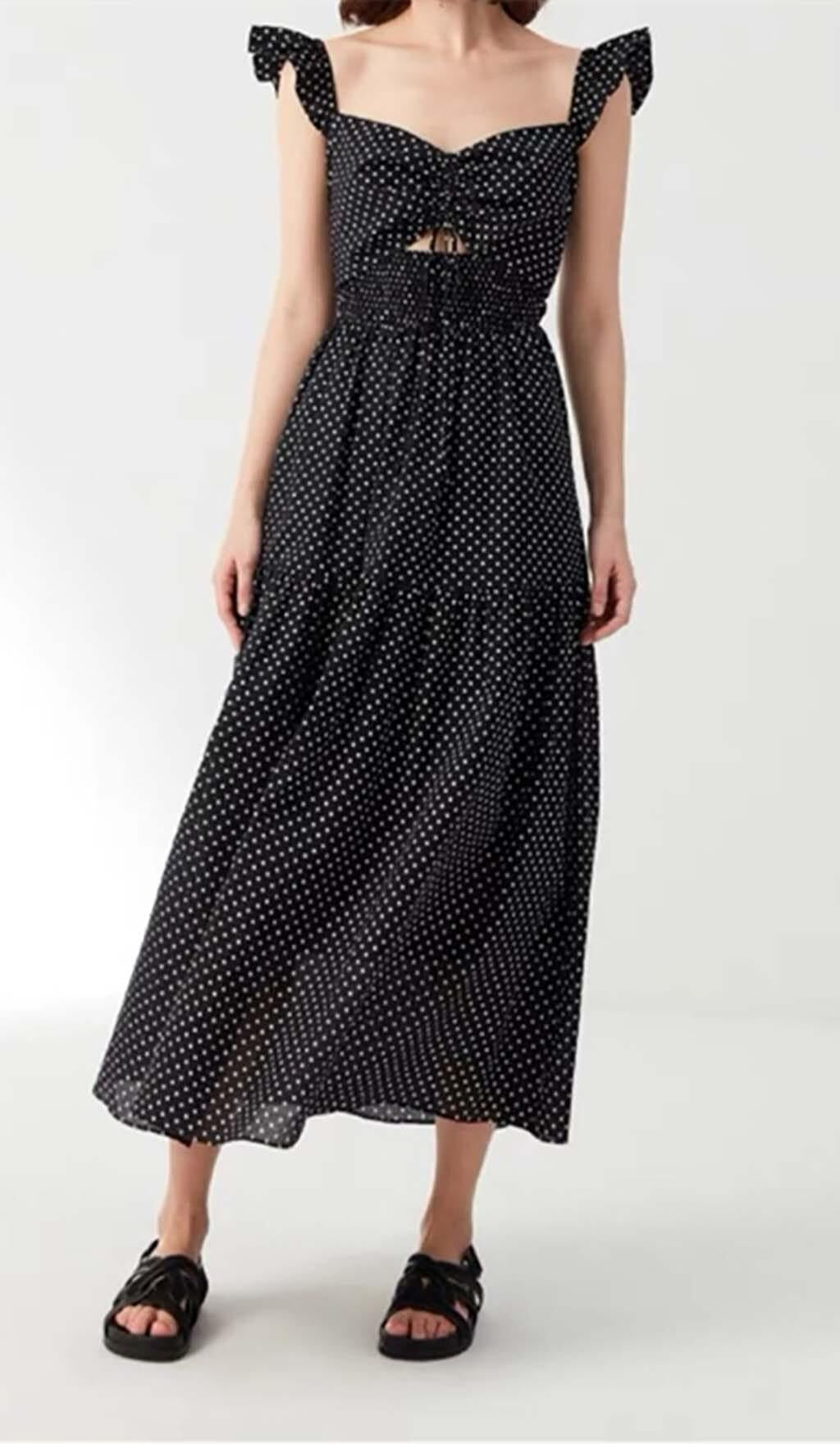 Elevate your style with our V-Neck Cutout Maxi Dress in Black. This sleek and modern dress is designed to make a statement with its daring cutouts and flattering silhouette. Whether you're attending a special event or simply want to turn heads wherever you go. this dress is the perfect choice.