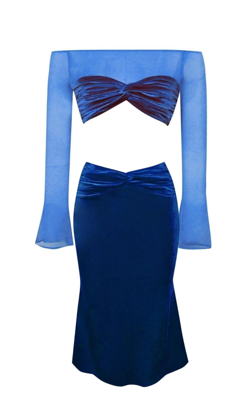 Make a statement with our Velvet Mesh Sleeve Two Piece Suit. Elevate your wardrobe with this trendy and versatile ensemble that is sure to turn heads wherever you go.