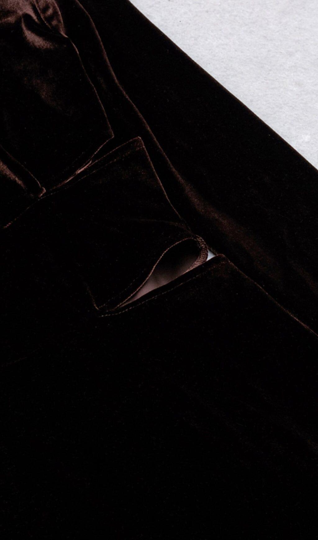 Introducing the Velvet Strappy Hollow Back Fishtail Dress in Coffee