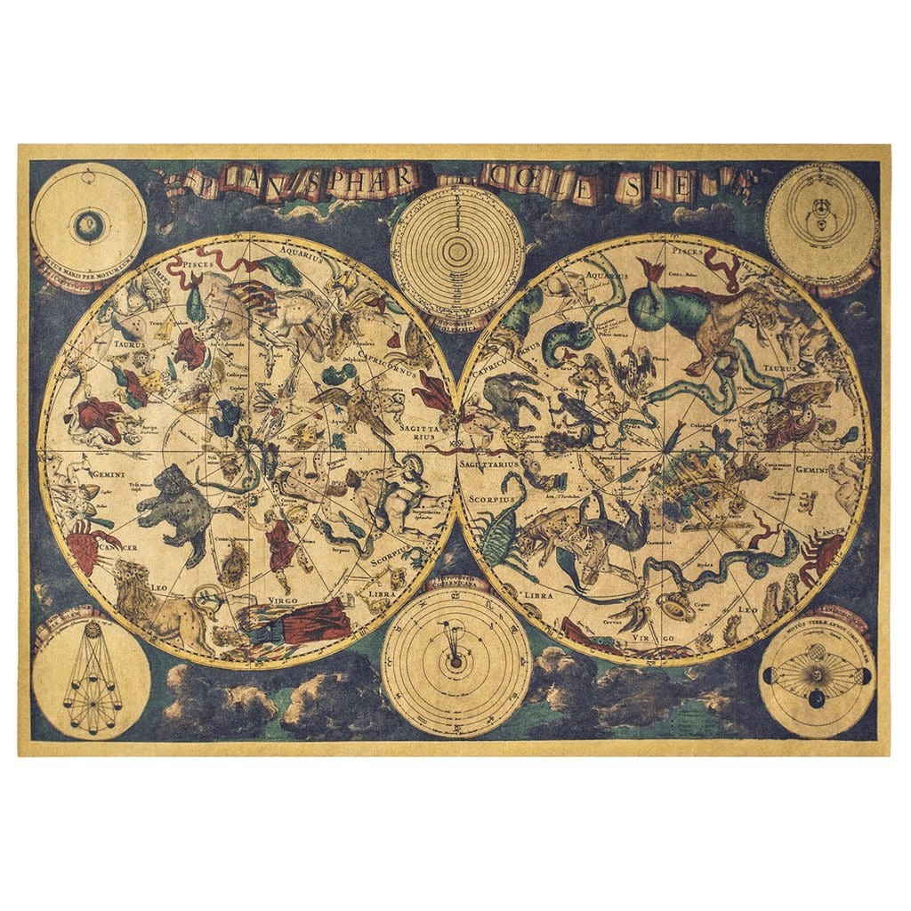 About: For the cartographers of you out there. this map brings a classic feel that is perfect for adding a touch of refinement to any room in your home. Even better. this is actually a map of the stars to cater to the spiritualism of astrology. Taking inspiration from the late-medieval European style. get lost in the intricate design of the different astrological symbols that extend far beyond the Hellenic 12 we are all already familiar with. If you delve even deeper. you will also notice a number of keys that highlight the different houses and celestial arrangements. making this an excellent cover for a table to read tarot over. Made from paper with an adhesive side. this poster will stick anywhere.