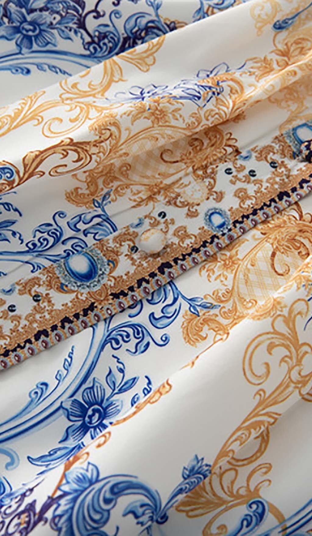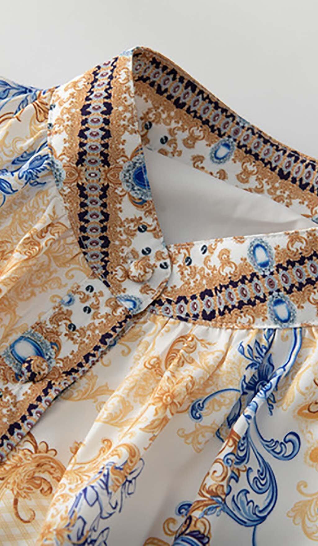 Step back in time with our Vintage Floral Full Printing Maxi Dress. Inspired by vintage fashion. this dress features a beautiful floral motif that blooms across the fabric. adding a touch of romance to your wardrobe. With billowy lantern sleeves. this dress creates an airy and feminine look. while the slim straps elegantly flaunt your shoulders.