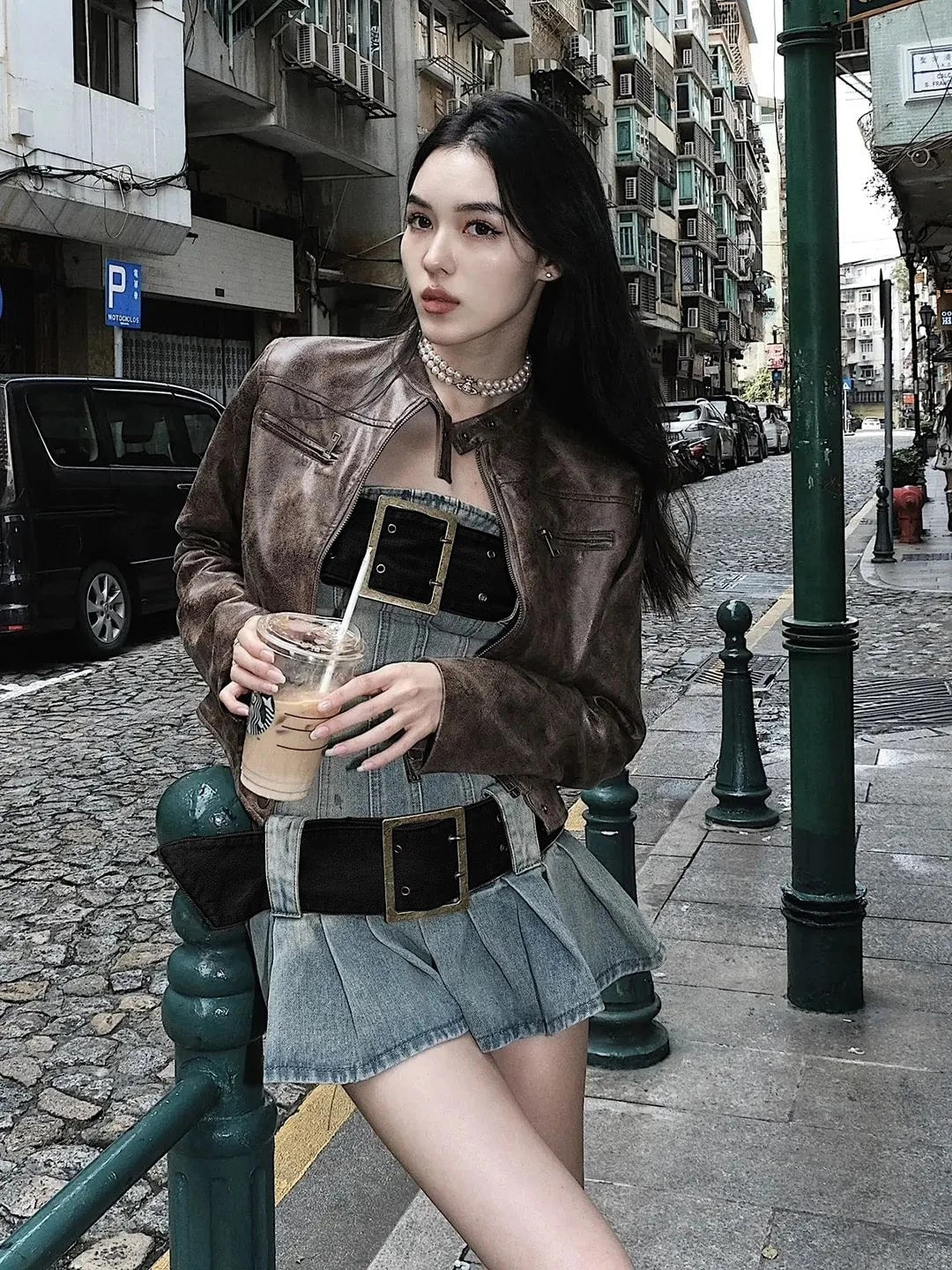 Turn heads with the Vintage Y2K Denim Dress. a perfect fusion of grunge-inspired streetwear and modern summer fashion. This strapless pleated mini dress features a flattering bodycon fit and a stylish belt that enhances your waistline. Crafted from high-quality denim. it embodies the 2000s streetwear aesthetic. making it a must-have for any retro or Y2K wardrobe. Designed for comfort and style. this tube top denim dress is perfect for casual outings. parties. or summer festivals.