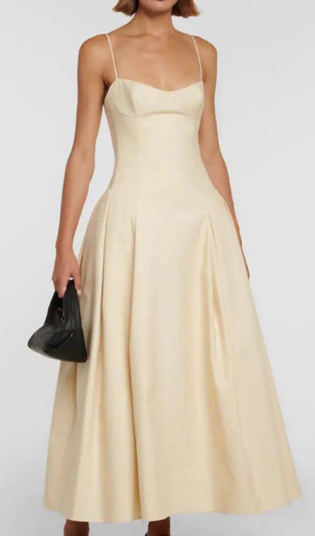 Step into elegance and embrace a touch of vintage charm with our Waist-Tightening Maxi Dress in Beige. With its French suspender design and holiday-inspired beige color. this dress will transport you to the enchanting world of a Roman holiday. Whether you're attending a special event or simply want to look effortlessly chic. this dress is a must-have addition to your wardrobe.