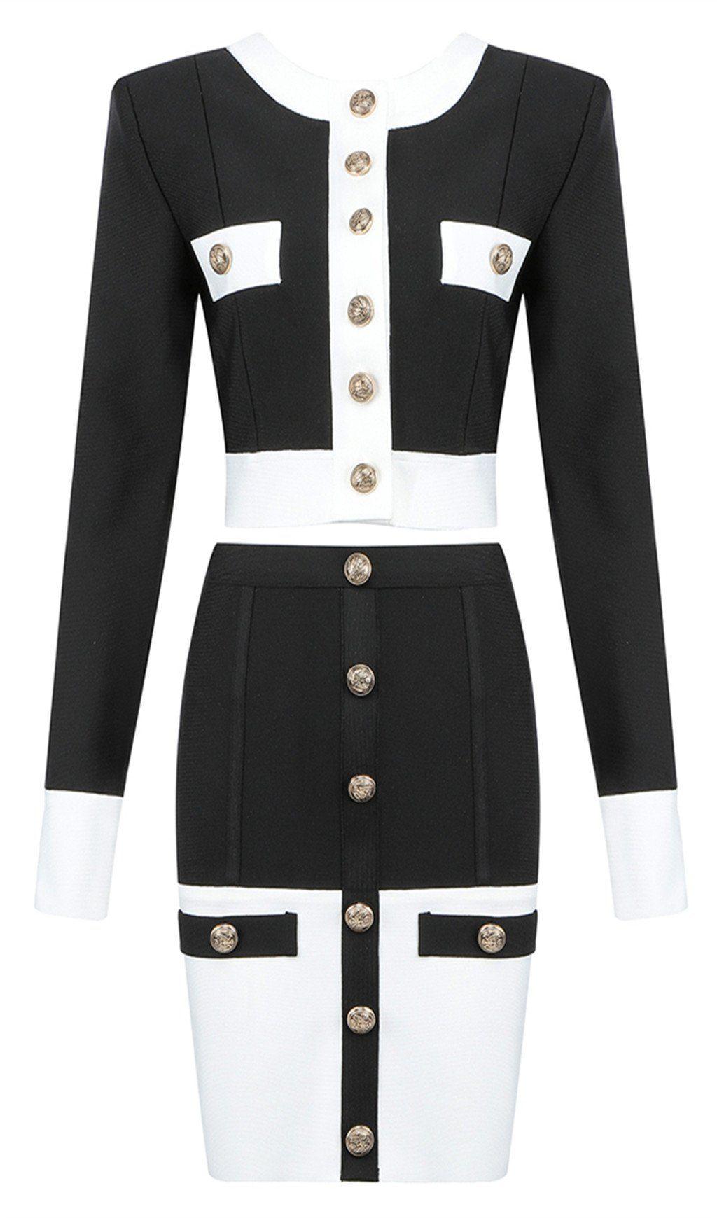 The White and Black Bandage Dress is the perfect combination of elegance and style. Made with a very elastic fabric. this dress offers a comfortable and flattering fit for any body type. Its unique design features a white and black color scheme. adding a touch of sophistication to your look.
