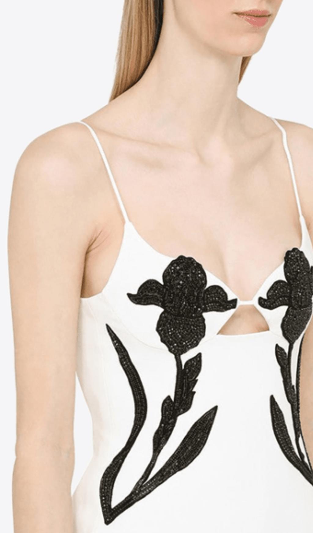 The intricate floral appliques add a touch of elegance. while the mini length shows off your legs. Perfect for any occasion. this dress will make you feel confident and beautiful.