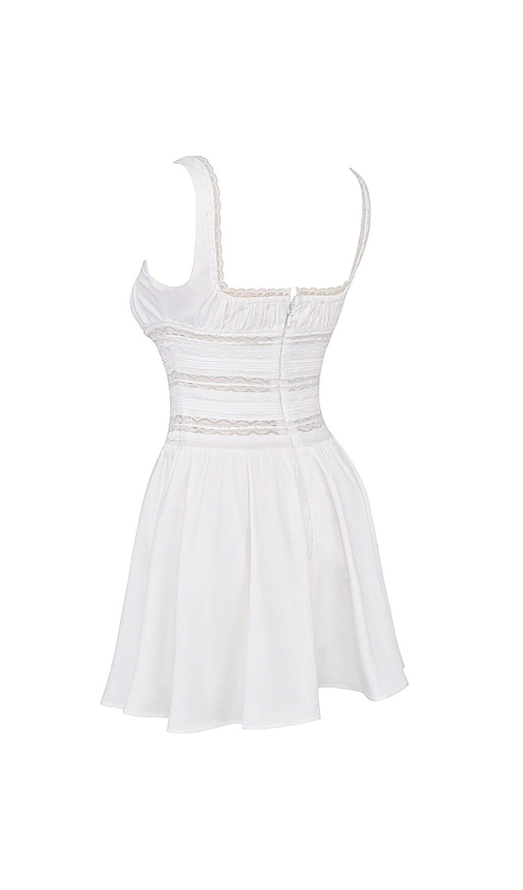 This WHITE LACE TRIM MINI DRESS is perfect for various occasions: