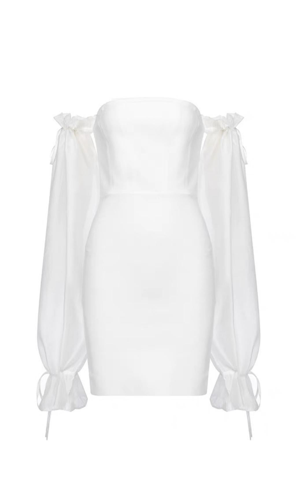 Get ready to turn heads with our White Lace Sleeve Stitching Bandage Dress. With its elegant design and impeccable craftsmanship. this dress is perfect for any special occasion. Whether you're attending a cocktail party. a dinner date. a birthday celebration. or a wedding rehearsal. this dress will make you look and feel stunning.