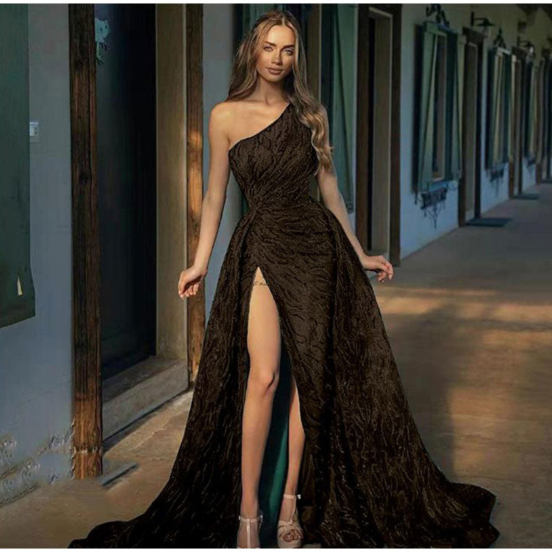 Redcit - Sequin Off Shoulder High Split Inclined Shoulder Dress