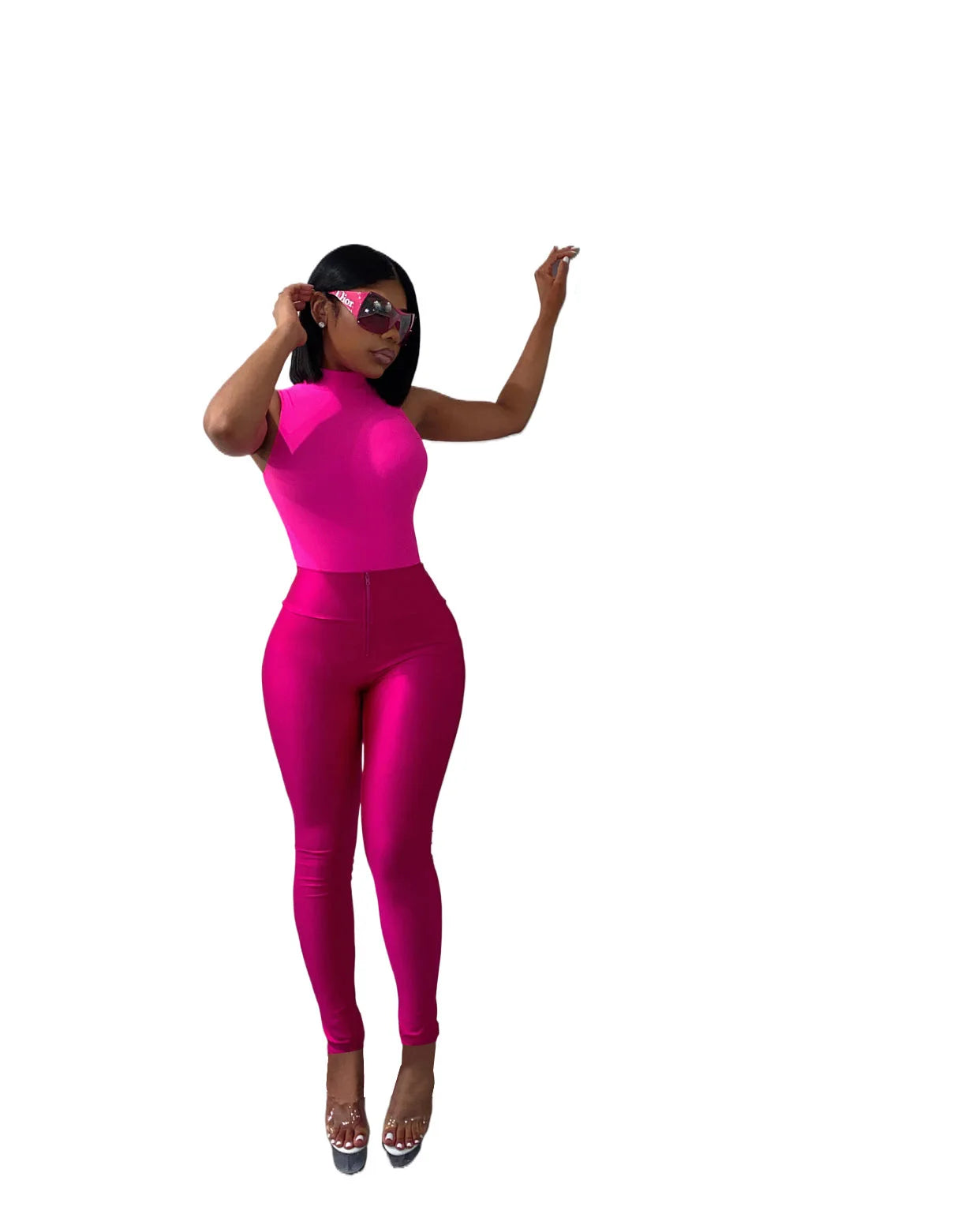High Waist Zipper Faux Leather Bottom