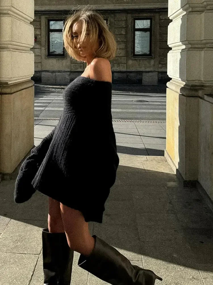 Oversize Sexy Slash Neck Loose Off Shoulder Wide Sleeves Knitted Sweater
