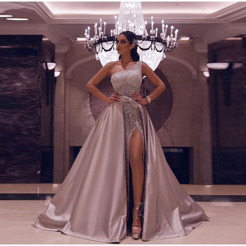 Redcit - High Split Sequin Off Shoulder Sleeveless Maxi Dress