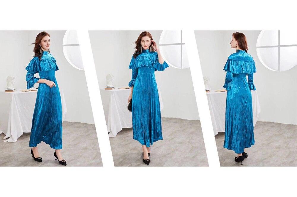 Redcit - O Neck Long Sleeves Beaded Ruffles Elegant A Line Maxi Party Prom Dress