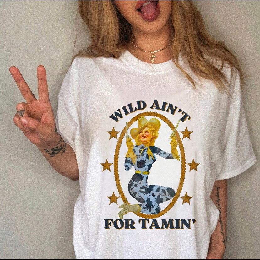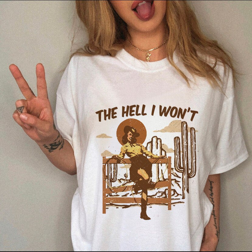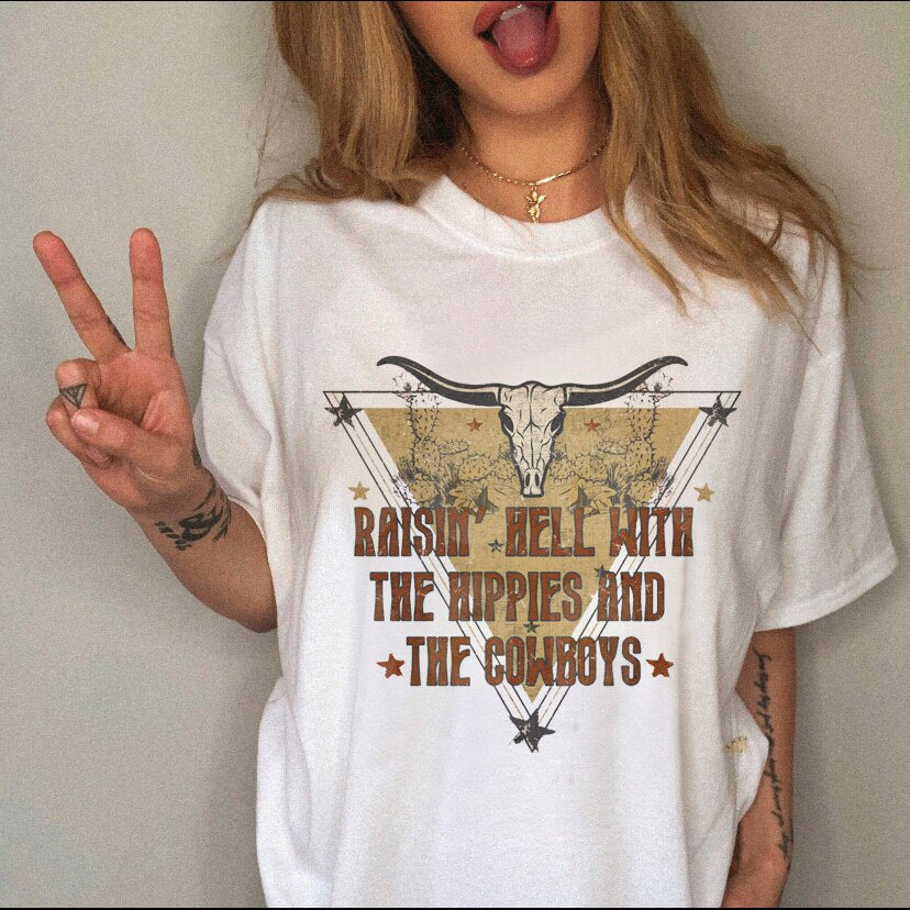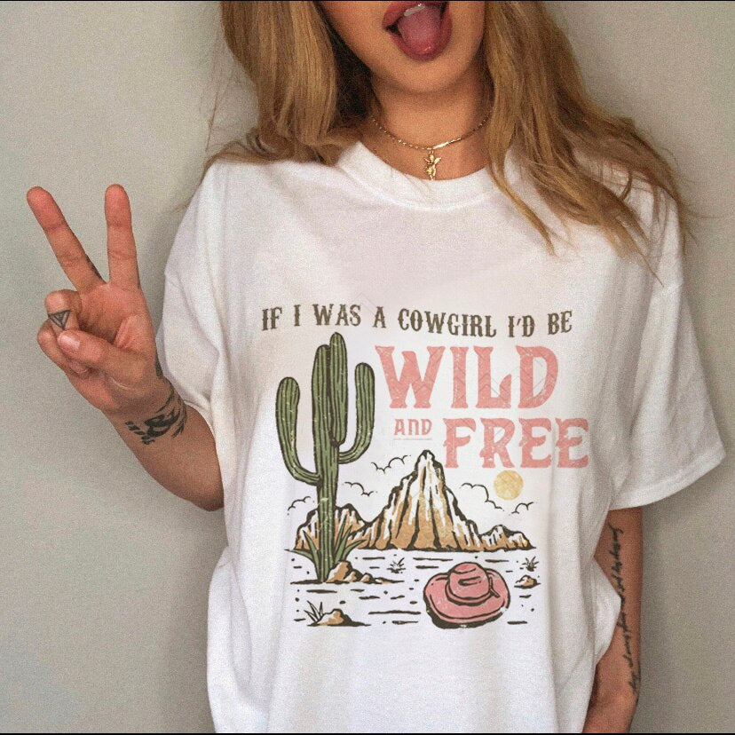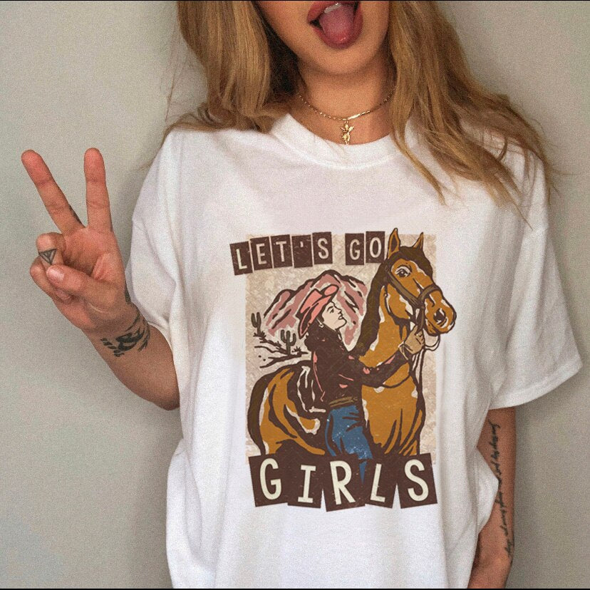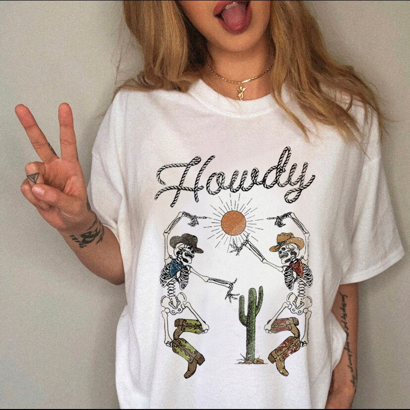 Redcit - Women's T-shirt Western Cowboy Cartoon Letter Print Funny Cute Short