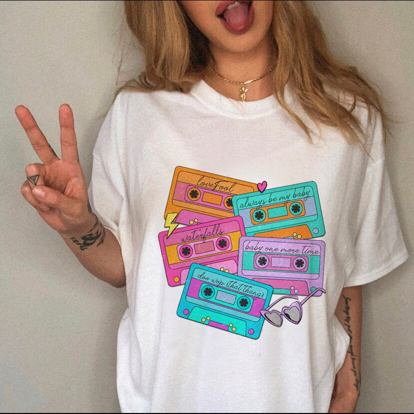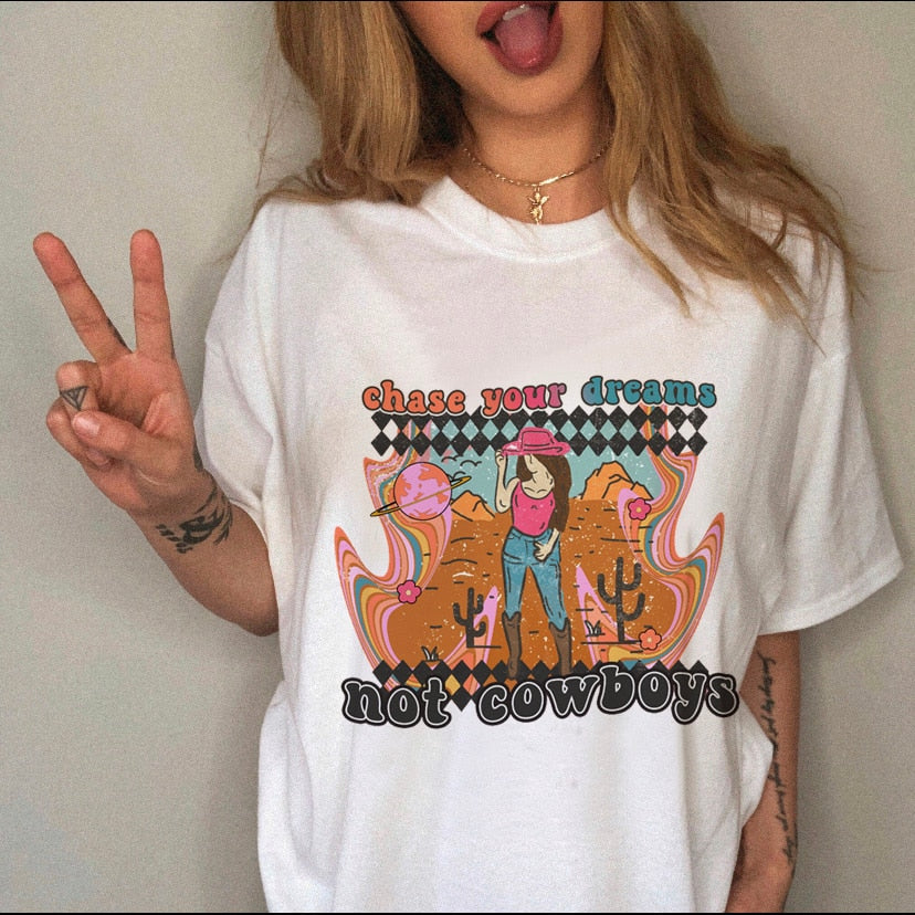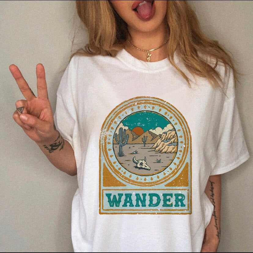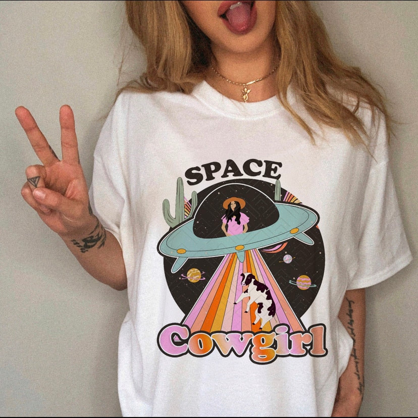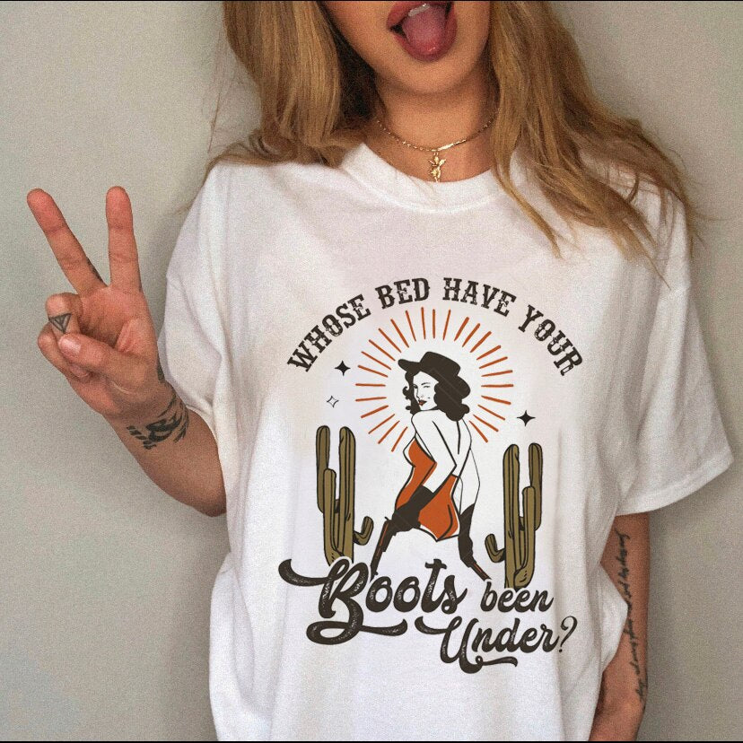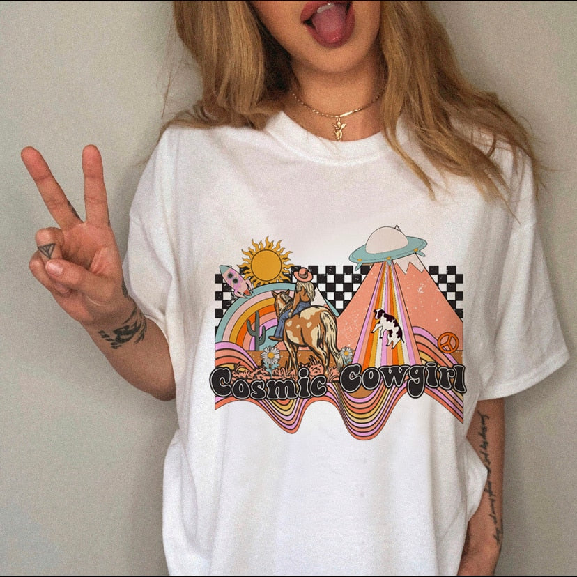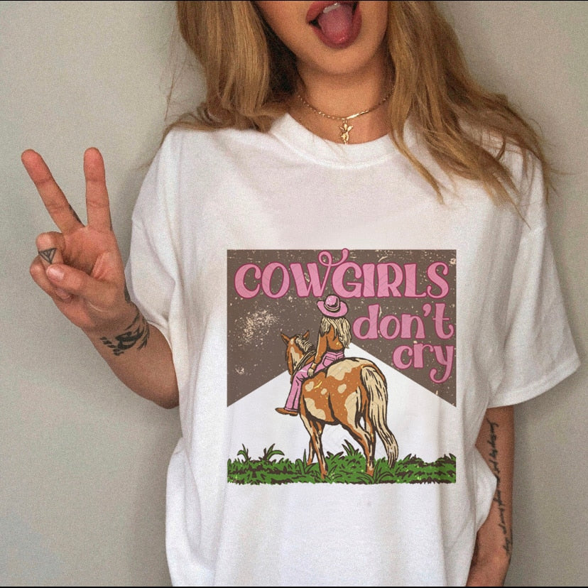 Redcit - Women's T-shirt Western Cowboy Cartoon Letter Print Funny Cute Short